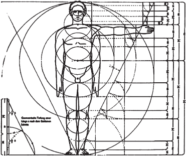 Примерно в одно и то же время с Да Винчи изучением пропорций человеческого тела занимается Альбрехт Дюрер. Золотому сечению Дюрер также отводит важное место.