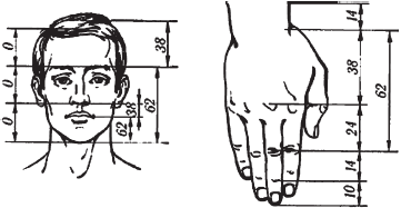 • расстояние от линии волос до подбородка составляет 1/10 его высоты