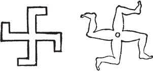 Откуда появилась свастика?Этот знак с незапамятных времен употребляется браминистами и буддистами Индии, Китая и Японии в орнаменте и письме, выражая собой привет, пожелание благополучия. С Востока свастика перешла на Запад; ее изображения встречаются на некоторых из древнегреческих и сицилийских монетах, а также в живописи древнехристианских катакомб, на средневековых бронзовых надгробных плитах, на священнических облачениях XII–XIV столетий. Усвоив себе этот символ в первой из вышеозначенных форм, под названием «гаммированного креста» (crux gammata), христианство придавало ему значение, подобное тому, какое он имел на Востоке, то есть выражало им ниспослание благодати и спасения.