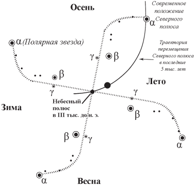 Вокруг северного небесного полюса совершается как суточное вращение небосвода, так и годовое вращение. Суточное человек не может увидеть, так как днем звезды незаметны. А вот зарисовать годовое движение звезд – можно. Трипольские жрецы именно этим и коротали ночи: выбирали одно какое-нибудь созвездие и зарисовывали его расположение в одно и то же время четыре раза в год.