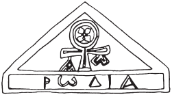 Альфа и омега на кресте Анкх (символ жизни). Изображение на фронтонном поле надгробного памятника «Родиа» в Фаюме. Египет, VI в.