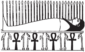 Изображение «проросшего» Осириса (внизу – анкх). Рисунок на папирусе