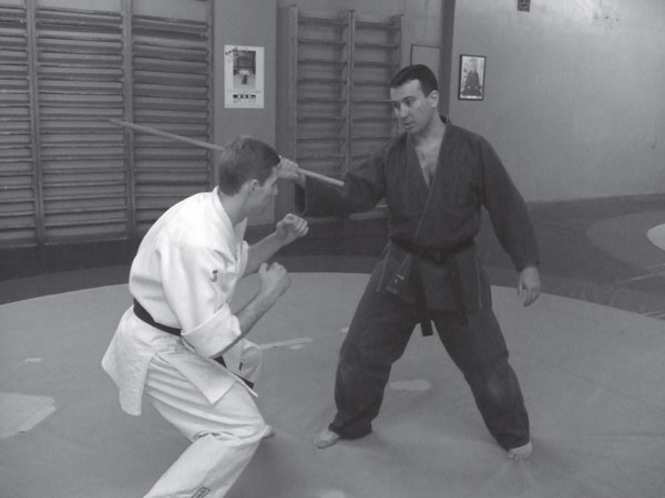 4.1.5. При демонстрации парных техник используется имитационное оружие, деревянное или резиновое, лишенное острой режущей кромки и опасного заострения конца лезвия.