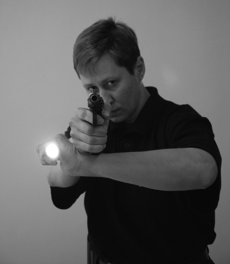 Фото 10. Вариант работы с фонарем с опорой запястья ведущей руки на запястье вспомогательной руки