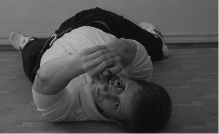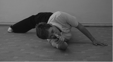 Фото 33. Осуществление толчка вспомогательной рукой для последующего переката