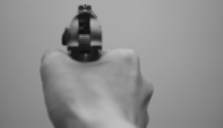 Фото 44. На расстоянии более 7 м от преступника или когда тот прикрывается заложником, стрелок фокусирует зрение на совмещении прицельных приспособлений, при этом мишень будет видна нечетко. В данной ситуации спусковой крючок обрабатывается аккуратно и мягко