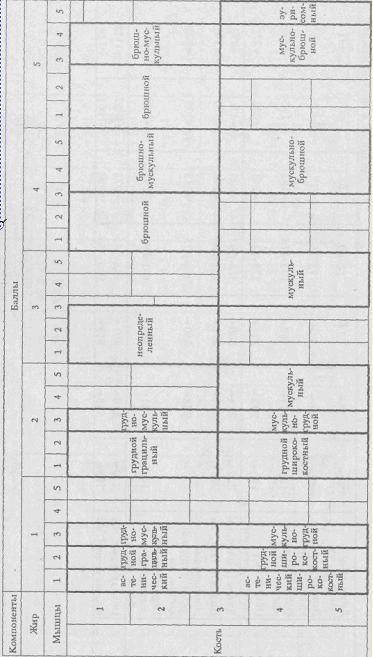 Таблица V.7. Возможные сочетания баллов развития основных компонентов веса тела у разных соматотипов.