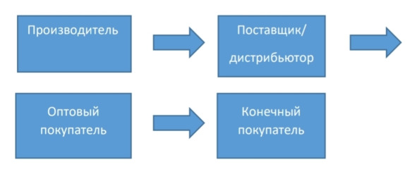 Простой принцип, чем больше участников сделки – тем выше цена. Нужно учитывать, что и поставщиков в цепочке может быть несколько, поэтому важно понимать какое место в этой схеме занимаете вы и какую роль играет компания, у которой вы будете приобретать товар для своего магазина.
