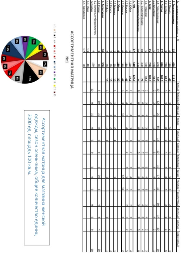 Ассортиментная матрица – это схематическое изображение структуры вашего ассортимента. В ассортиментную матрицу входят: количество единиц, количество модельных рядов, ассортиментные группы, распределение по цветам и принтам. В этом разделе, вы найдете рекомендации о создании ассортиментной матрицы для разных категорий магазинов (женской мужской/детской). При работе вы можете использовать их (это полноценные рабочие варианты), а можете разрабатывать собственные варианты, в зависимости от вашего магазина и его направления.