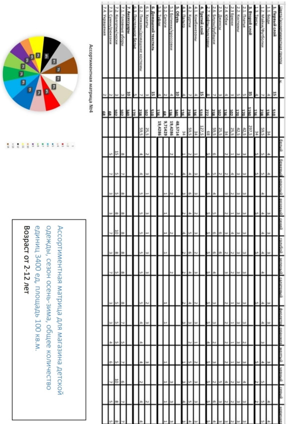 Далее рассмотрим 3 ассортиментные матрицы для женского, детского, мужского магазинов одежды с широким и глубоким ассортиментом (микс).