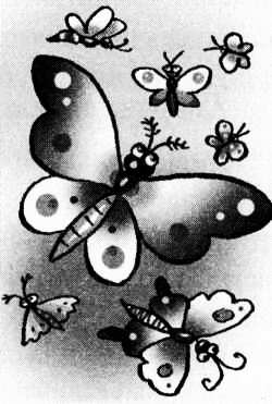 Анжелика усадила её перед зеркалом и покрасила Танины веки ярко-синими тенями. После этого провела над ресницами синюю линию. Затем покрыла ресницы чёрной тушью, нанесла на лицо слой крема, а на скулы ярко-синие румяна. Полюбовалась на свою работу и покрасила Тане губы помадой ядовито-сиреневого цвета.