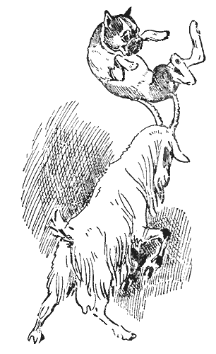 Лорд улёгся под тем местом, где всё время спрыгивал кот, и тот, боясь собаки, торопился уйти от него.