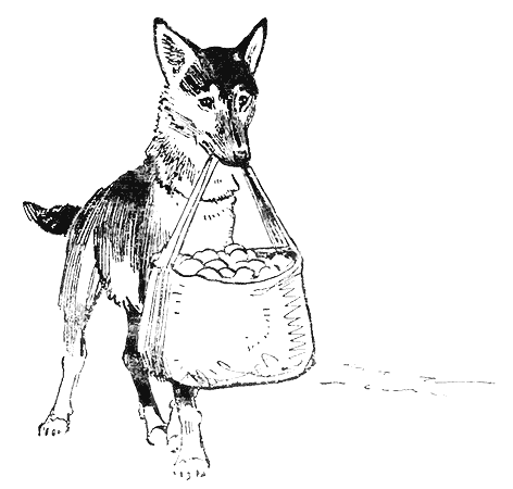 И Джульбарс опять шевелит хвостом, не трогаясь с места: ведь хозяин приказал ему охранять покупки. Потом хозяин протягивает ему клеёнчатую сумку, в которую продавец отвесил семь килограммов картошки. Джульбарс берёт сумку в зубы и важно шагает за хозяином домой.