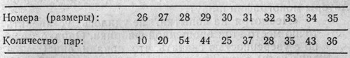 И вот таблица затребованной обуви. Две графы. В первой указаны размеры. Во второй – количество. Выглядит это так: