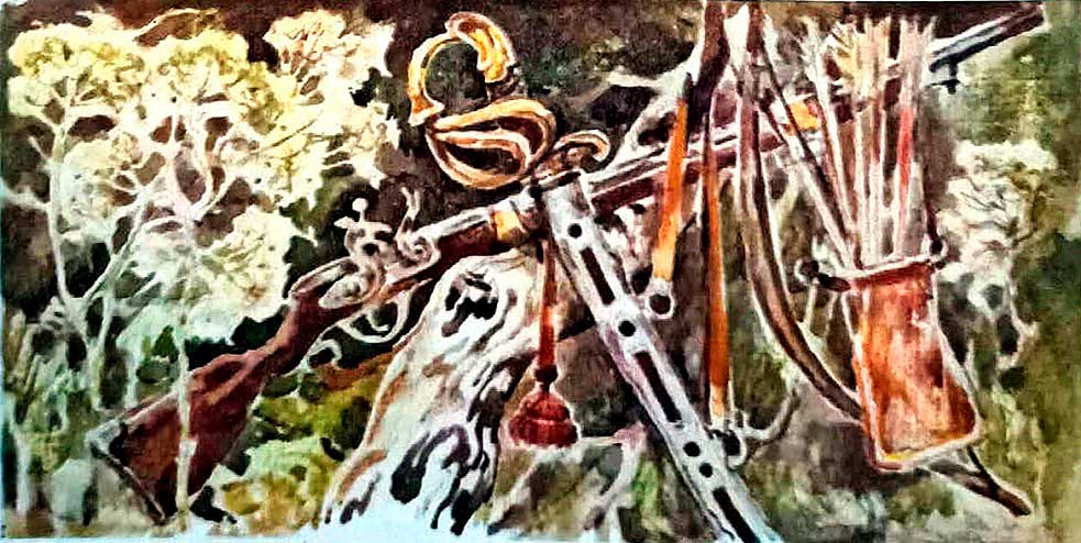 Надежда смастерила лук и стрелы, спрятала в дальнем углу сада. В доме валялось сломанное ружьё, Надежда отнесла ружьё в свой тайник. Потом туда перекочевала старая отцовская сабля.
