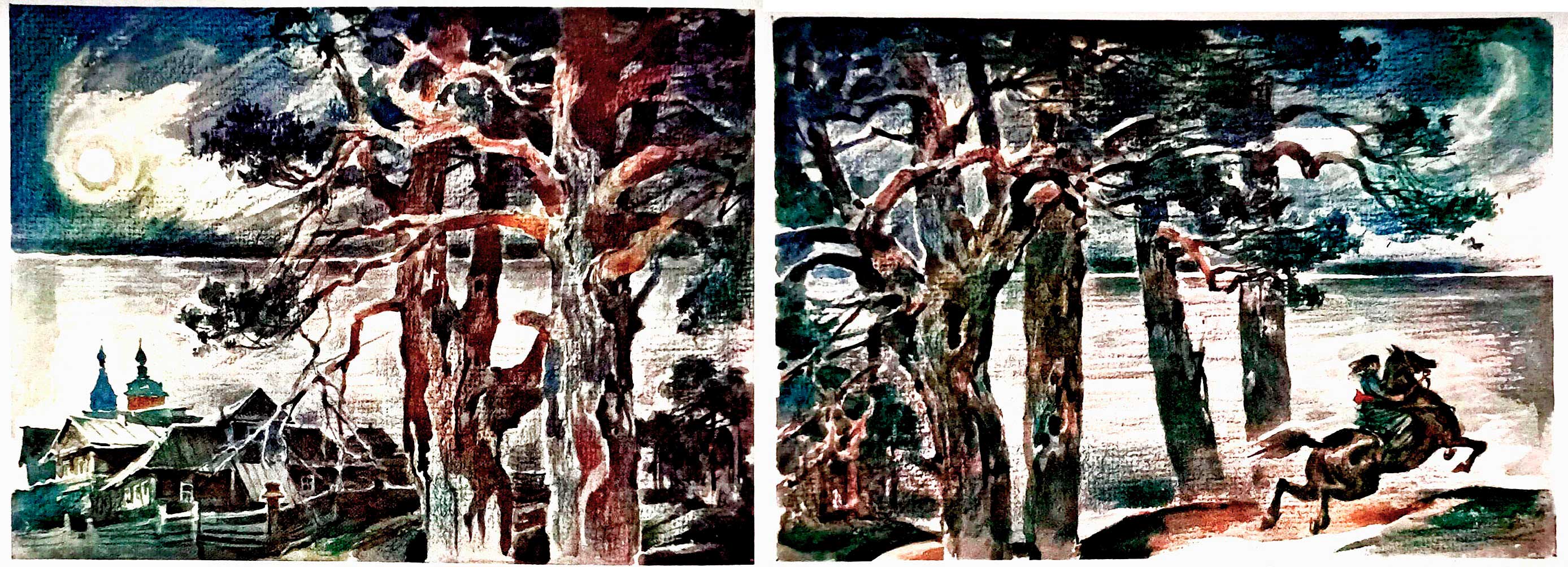 Ночь, лес, неприятель где-то близко. Надежда в бою не робела, а тут её нога не сразу сыскала стремени. «Куда же ушёл полк? Алкид, выручай!» Она опустила поводья и доверилась коню. Алкид помчал, перескакивая рвы и кусты. Через четверть часа Надежда присоединилась к своему эскадрону.