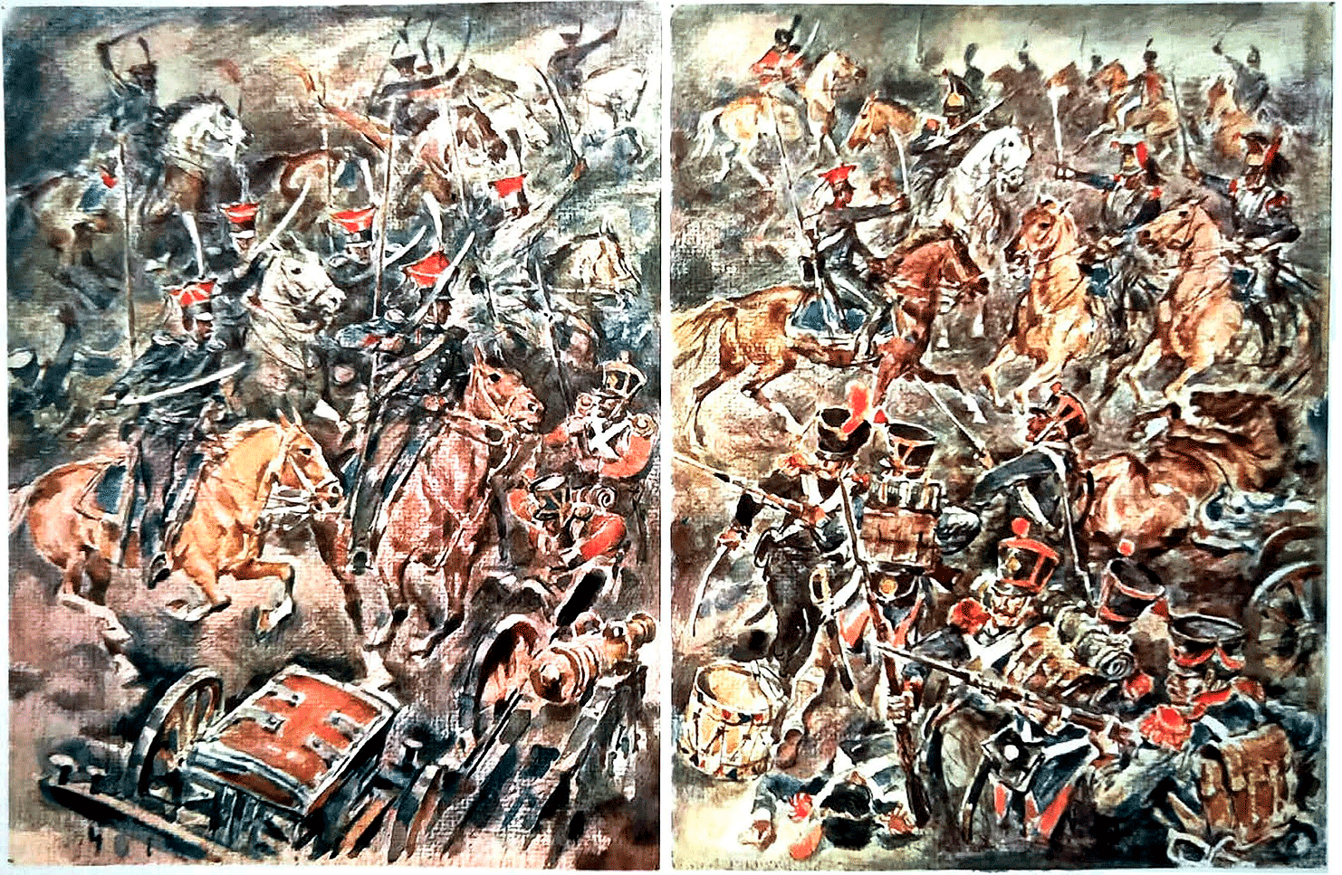 Гремят пушечные выстрелы. Рокочут летящие ядра. Сверкая саблями, летит конница. Спокойной поступью, сосредоточенно, идут на неприятеля пехотные полки…
