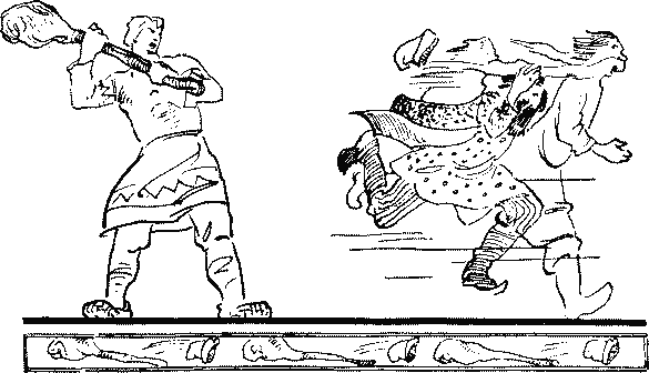 Распалилось в нём богатырское сердце, выхватил он боевую палицу и прогнал Усыню, Горыню и Дубыню из царства прочь.