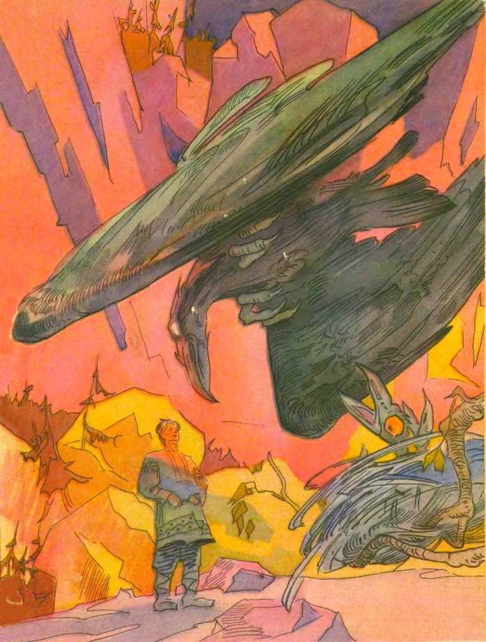 Вдруг шум-гром, – налетела птица Могол, закричала страшным голосом: