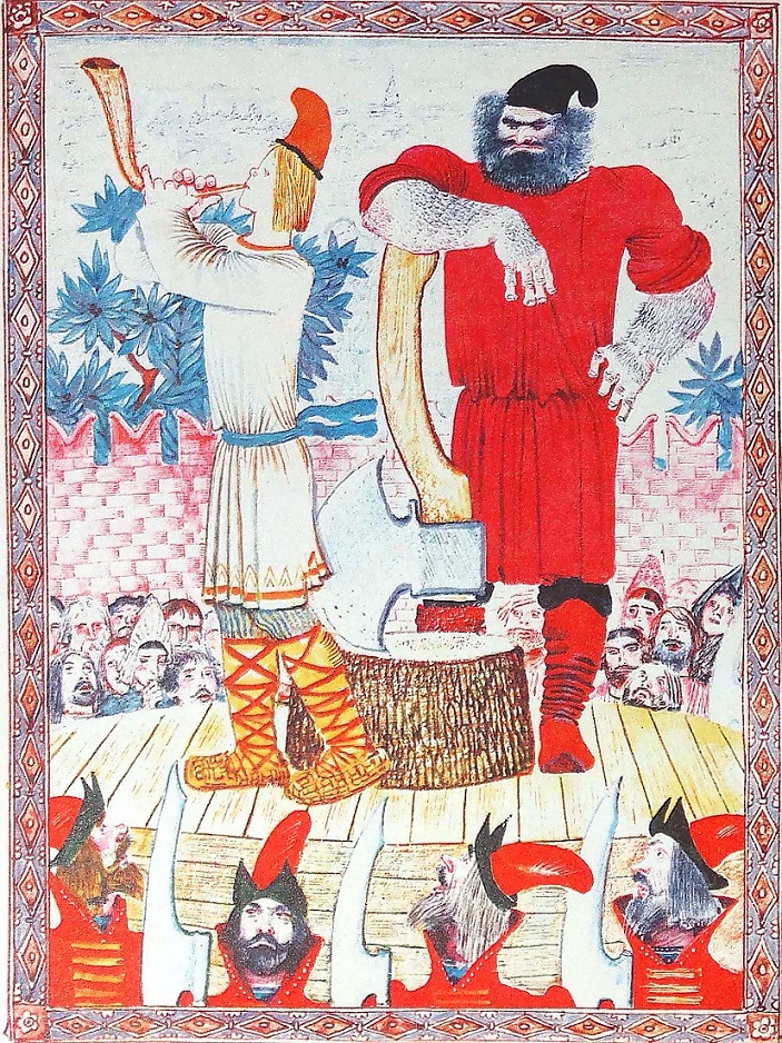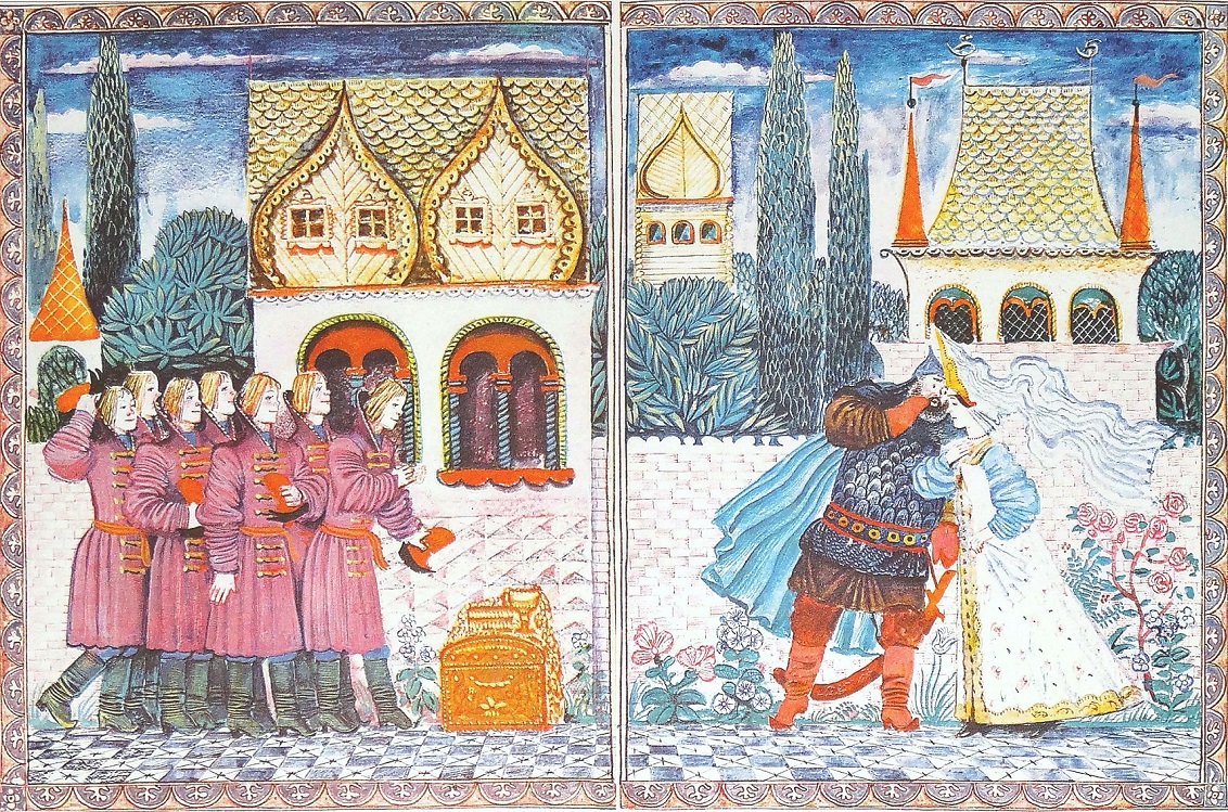 – Пошли, царь-батюшка, за Еленой Прекрасной семь Симеонов – они великие искусники. А не привезут царевну прекрасную – вели их казнью казнить, головы рубить.