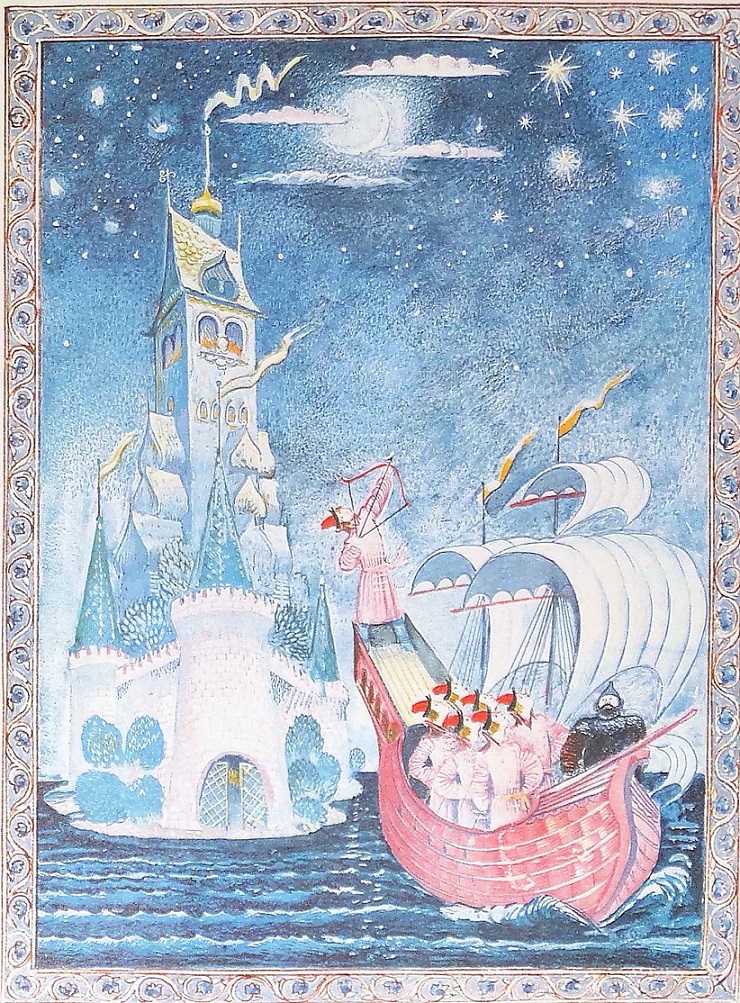 Вот на корабль сели – паруса зашумели, волны заплескали, и поплыли по морю-океану, к острову Буяну.