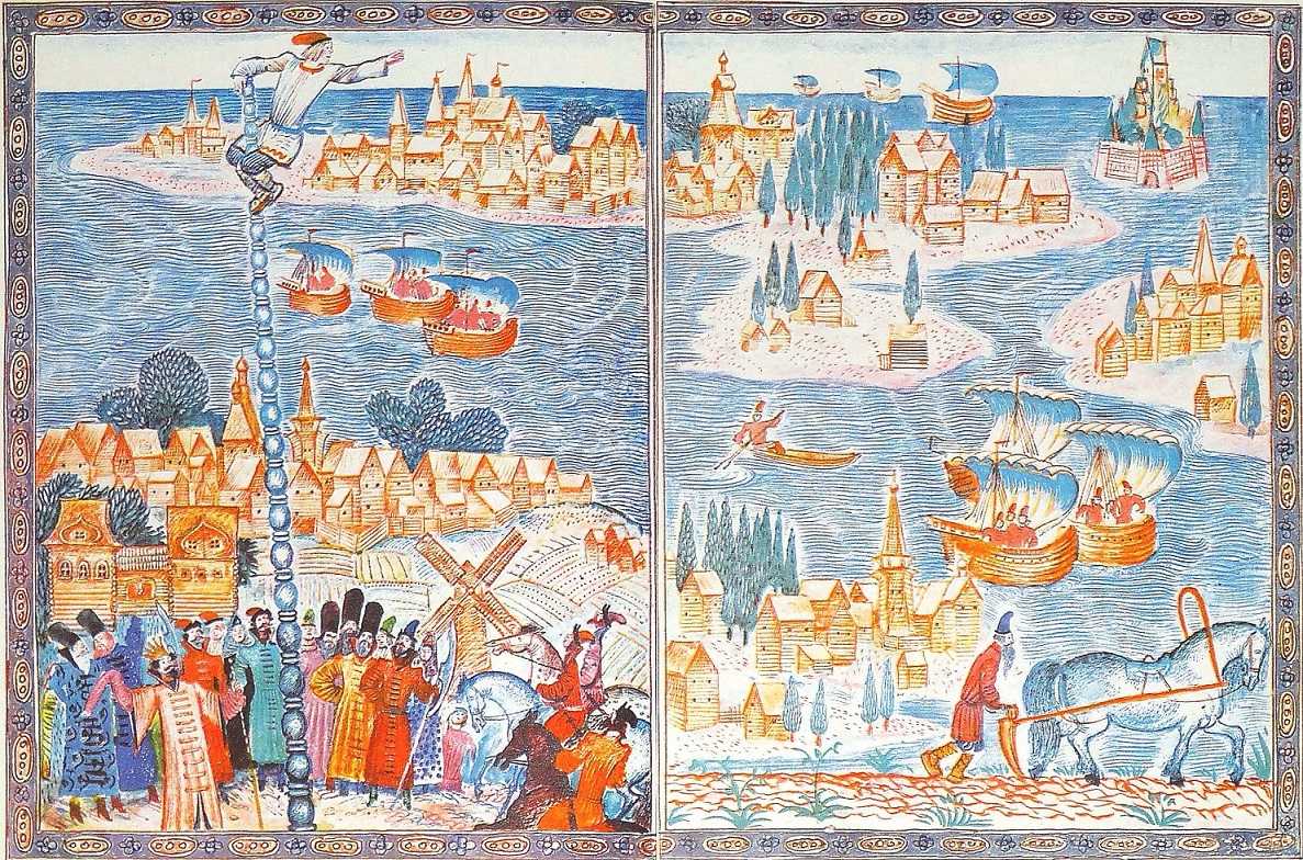 Свадьбу сыграли, за работу принялись: Симеон-хлебороб хлеб сеет; Симеон-мореход по морям плавает: Симеон-звездочёт звёздам счёт ведёт; Симеон-стрелец Русь бережёт… На всех работы на Руси-матушке хватит.