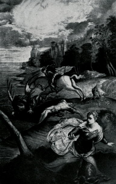 Холуэлл-Карр собрал свою коллекцию в период, непосредственно последовавший за крушением наполеоновской империи, когда, получив свободный доступ на континент, английские агенты активно занялись покупкой художественных сокровищ у разорившихся монастырей и старых дворянских фамилий. Благодаря своей предприимчивости и непосредственной связи с королем этого художественного рынка Бьюкененом Холуэлл-Карру удалось собрать и затем завещать галерее тридцать четыре картины, различные по качеству, но включавшие несколько действительно выдающихся произведений. Назовем лишь некоторые из них: «Св. Георгий» Тинторетто, «Св. семейство» Тициана, «Св. семейство» Андреа дель Сарто, а из северных мастеров – изумительная «Купающаяся в ручье женщина» Рембрандта. Кроме них был еще ряд полотен Гверчино, Доменикино, Луини, Себастьяно дель Пьомбо и Джулио Романо. Именно благодаря холуэлловскому вкладу наметилось ядро будущего итальянского отдела галереи, составившего впоследствии ее главную гордость. Среди всех этих полотен, пожалуй, наиболее выдающимся и незабываемым является «Св. Георгий» Тинторетто, так выразительно завершающий пышный расцвет венецианского искусства XVI века. Если написанная на несколько десятков лет ранее картина Тициана «Вакх и Ариадна» символизирует как бы наивысший подъем культуры Возрождения с ее героическим оптимизмом и светлой верой в человека и его безраздельное право на радость и счастье, то «Св. Георгий» Тинторетто говорит уже о крушении прежних идеалов. Так же как и в картине Тициана, мы отмечаем здесь редкую красоту колорита, богатство движения, прекрасные человеческие фигуры, но все это наполняется совершенно иным содержанием. Свидетель многих бедствий, обрушившихся на его родину, – нашествие иноземцев, жестокое усиление политического и религиозного гнета, – Тинторетто не мог не отразить в своем творчестве охватившего его внутреннего смятения и беспокойства. Отсюда то трагически взволнованное звучание, которое получает у него старый, традиционный сюжет битвы св. Георгия с драконом. Стремительное движение скачущего на коне всадника и убегающей в страхе царевны как бы разрывает в разных направлениях рамки картины. Сумрачное освещение с отдельными беспокойными вспышками света создает ощущение тревоги и смятения, которые еще усиливаются своеобразным колоритом произведения с преобладанием холодных, зловещих синеватых оттенков. Сама природа, которая у Тициана была таким гармоническим окружением жизни человека, становится у Тинторетто пугающей и враждебной, говоря о новом, драматическом мировосприятии художника.