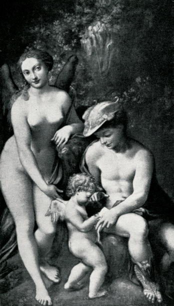 Еще в 1834 году была куплена большая картина Корреджо «Воспитание Амура», или «Венера, Меркурий и Амур», – великолепное полотно мастера с характерной для его произведений грацией образов, мягкой светотенью и виртуозной передачей обнаженного тела. У этого выдающегося произведения интересная история. Оно было написано Корреджо в 1521 или 1522 году. Столетием позднее мы находим его в прославленном собрании картин герцогов Мантуанских. В 1625 году Карл I английский, собиравший тогда по всей Европе картины для своей коллекции, направил в Мантую доверенных лиц, купивших для него «Воспитание Амура» вместе с несколькими другими произведениями. Когда о продаже картины стало известно в городе, поднялось такое возмущение, что испугавшийся герцог Мантуанский давал двойную цену, только бы вернуть ее обратно. Но дело было уже сделано, и англичане поспешили погрузить картину на корабль «Маргарет», который и прибыл благополучно в Лондон в 1628 году. Произведение заняло свое место в личных апартаментах короля в Уайт-холле, где и оставалось в течение двадцати лет, но казнь короля и последовавшая затем распродажа его коллекций явилась началом новых странствий для «Венеры, Меркурия и Амура». Картина была продана за смехотворно ничтожную сумму в 40 фунтов стерлингов, и новый владелец герцог Альба увез ее в Испанию. В конце XVIII века она оказалась в собрании всесильного королевского фаворита Годоя, но, когда в Испанию пришли французские войска, ее захватил в качестве трофея Мюрат, любимый зять Наполеона, ставший правителем Неаполитанского королевства. Когда империя Наполеона пала, а Мюрат был расстрелян, его вдова, бежавшая в Вену, захватила с собой несколько картин, в том числе и знаменитое полотно Корреджо. В 1822 году второй Венский конгресс, собравший почти всех монархов Европы, дал возможность канцлеру бывшей королевы неаполитанской начать переговоры с рядом министров о продаже картины. Русские власти охотно откликнулись на это предложение, но, пока договаривались об условиях, английский министр лорд Лондондерри, явившись приватно к канцлеру, выдал ему сразу требуемую сумму и захватил картину. Когда русские власти подняли шум и опротестовали эту сделку, «Воспитание Амура» уже находилось в Англии, где двенадцать лет спустя было продано Национальной галерее. Все эти «превратности судьбы» не могли, конечно, не отразиться на самом художественном произведении. Картина подвергалась многим и не всегда удачным реставрациям и расчисткам, частично уничтожившим тончайшие лессировки верхнего слоя. Краски в тенях потемнели и пожухли, но, несмотря на это, замечательное произведение и сейчас продолжает оставаться одним из самых выдающихся памятников всего собрания.