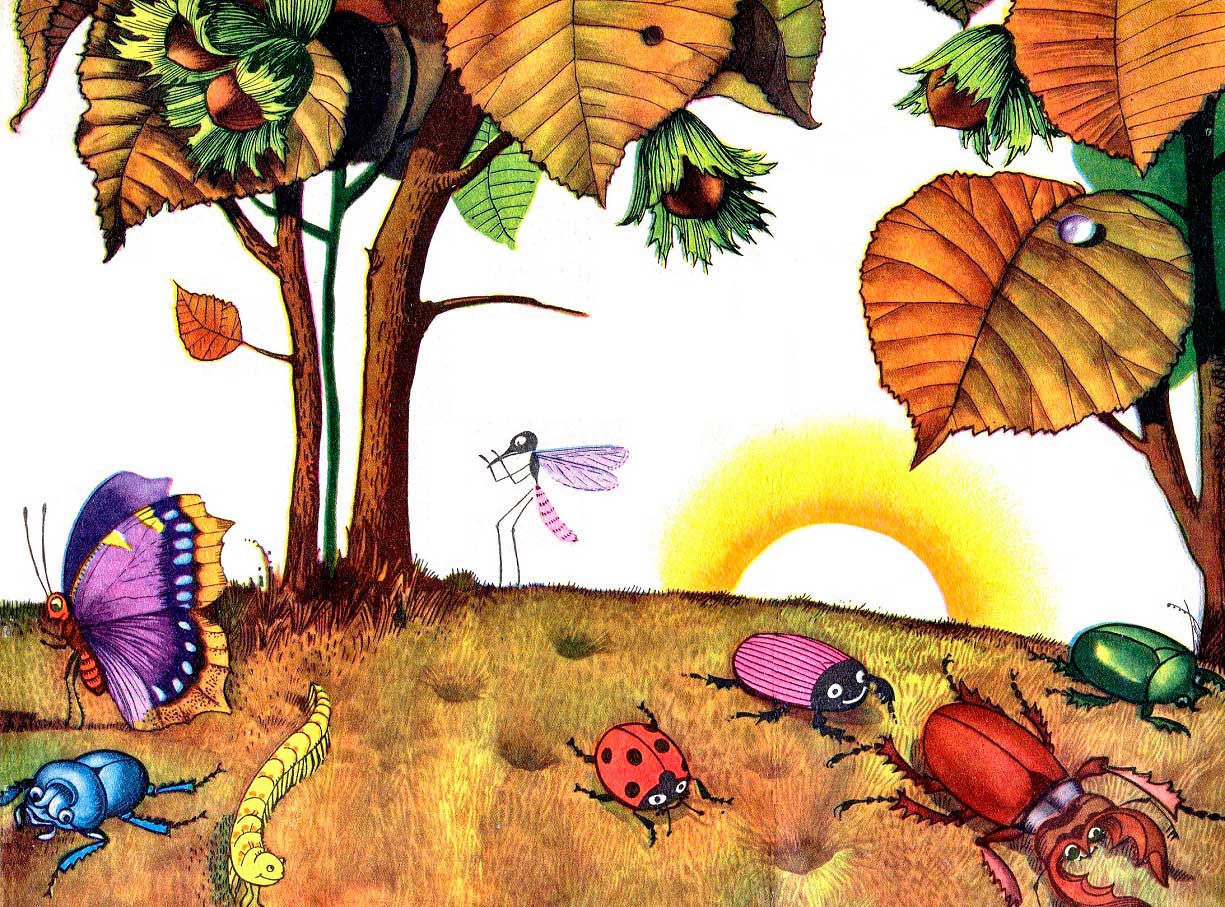 – А меня Гусеница обидела. Она мой домик так толкнула, что он развалился, – говорит другой.