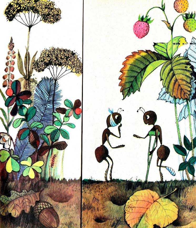 А Жук видит: муравьёв двое. Их вдвоём не осилишь. И уполз поскорее.