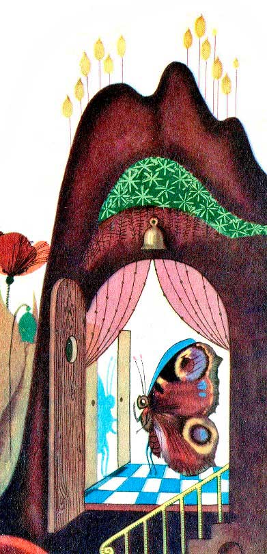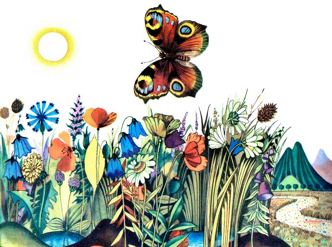 – Полечу к цветам, – решила Бабочка. – Спрошу у них… – И она надела бальное платье и полетела на луг, где росли цветы.