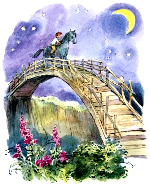 Но Лушины копыта уже твердо и уверенно стучали по дощечкам. Они благополучно перебрались на другую сторону бездонного оврага. Деревья на этой стороне росли часто-часто. И был густым кустарник и подлесок. Солнечные лучи проникали сюда с трудом и казались тоненькими, редкими, косо натянутыми между небом и землей золотыми нитками. Лунные и звездные лучи не проникали совсем.