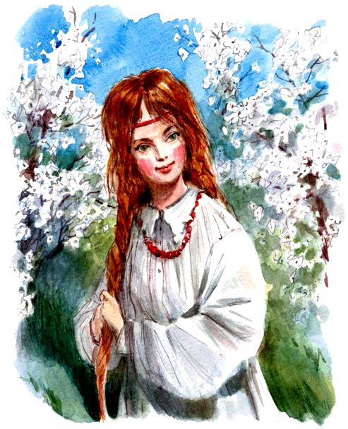 Цвели яблони. Белые, доверчивые цветы покачивались на распахнутых ветвях и тихо напевали, едва слышно, едва различимо выводили какую-то ласковую мелодию. За яблоневым садом стоял маленький белый домик с зеленым крылечком и зелеными ставенками. С крылечка по зеленым ступенькам спускалась им навстречу сестра Летница. Платье на ней было белое, широкое, длинное. И лицо у нее было белое, только на щеках румянец, и то неяркий, она улыбалась ласково и приветливо, и было в ней что-то такое, что сразу вызывало воспоминание о летнем деревенском утре, когда легкий туман плывет над озером, травы стоят в росе неподвижно, а на опушке леса проснулась лазоревка и звонкими капельками роняет свою песенку в траву. И светает, светает, и встает из-за леса ясное, нежаркое, хорошо выспавшееся солнышко.