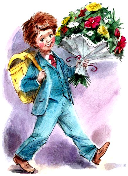 Много ребят с букетами и без букетов шли и бежали по широкому проспекту прямо к школе. Но папа, мама и мальчик с букетом свернули в переулок и быстрыми шагами дошли до ворот с вывеской «Садово-парковое хозяйство». В это время ворота как раз открывались и из них выезжала нет, вовсе и не машина, что естественно было бы ожидать в городе. Из них выезжала запряженная в телегу серая со светлыми пятнышками лошадь. На телегу были нагружены какие-то молодые кустики.