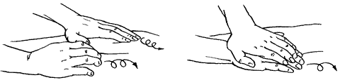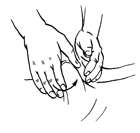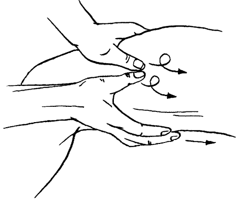 2. Прием выполняют энергично, но мягко, без рывков и не вызывая болевых ощущений, производя 50–60 движений в минуту.
