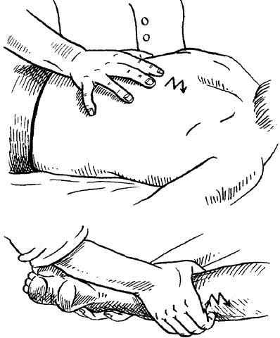 3. На внутренней поверхности бедер, в подколенной области, в местах проекции внутренних органов (почек, сердца) прерывистые вибрации (поколачивание, рубление) не проводят, особенно у лиц пожилого возраста.