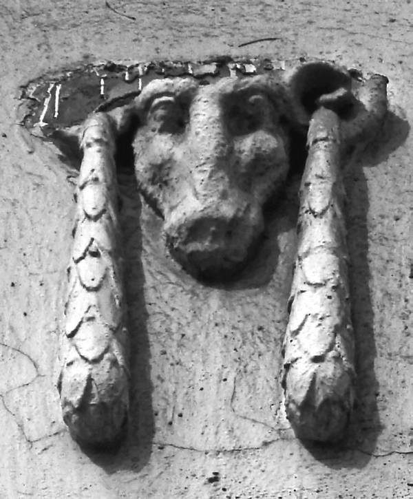 Одним из древнейших апотропеев является маскарон с изображением черепа жертвенного животного – букраний, что в переводе с греческого означает «бычий череп». Он также пришел к нам из времен античности. Дополненный гирляндами и жертвенными сосудами, он украшал культовые постройки, гробницы и алтари, напоминая о жертве богам и таинстве смерти. Со временем название «букраний» перешло на все маскароны с головой животного, и их стали использовать в архитектуре как дань античной традиции.