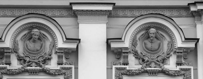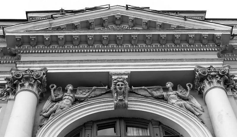 Доходный дом в Малом Кисловском переулке (дом № 9) украшают аллегорические барельефы – прекрасные фигуры слав