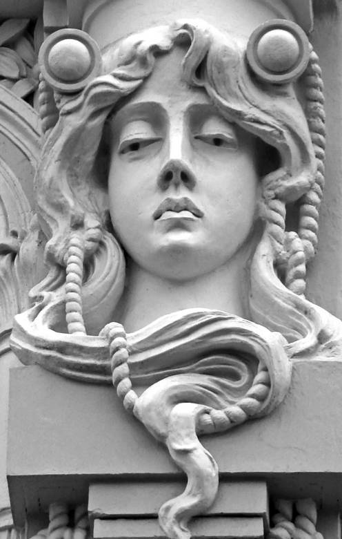 В начале XX века античные маскароны обогатились очаровательными безымянными женскими лицами – олереями, неким абстрактным образом истомы, женственности и тайны, причудливыми таинственными существами и головами египетских богов и богинь, например на улице Сергия Радонежского, 7, на Покровке, 19, на Старой Басманной, 12, в Рахмановском пер., 3.