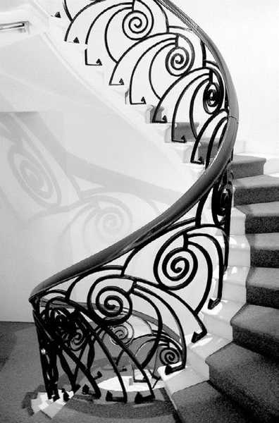 Парадная деревянная лестница также несет в рисунке своих перил изображение буйно растущих экзотических цветов. Над ней горит медный фонарь с матовым стеклом, от которого также исходит какая-то неведомая магическая сила. В столовой как в сказке есть потайная дверь, за которой – уникальная винтовая лестница в причудливых «завитках». Она пронизывает пространство прихотливым жгутом и завивается от подвала до личных покоев на втором этаже.