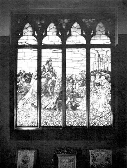 Стену парадной лестницы Врубель украсил великолепным витражом, завораживающим и заставляющим испытать какой-то особый, священный трепет. На нем перед сказочным замком, утопая в цветах, покрывающих луг, пышно одетые дамы встречают гордого рыцаря, погруженного в глубокое раздумье, в сопровождении кроткого пажа и мужественного оруженосца. Во всем облике рыцаря – какая-то тайна, мечта, загадка. Врубеля по праву называют художником мысли. Не случайно поэты-символисты – А. Блок, В. Брюсов, А. Белый считали художника своим предтечей.