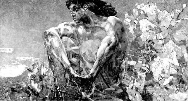 Скалистая арка, увитая плющом, постройки фантастического средневекового города, гряда каменистых гор, уходящих в голубую даль, стремительный бег облаков, холодно-серебряная луна и отливающие золотом звезды – все это необычное многообразие природы создавало возвышенно-приподнятую атмосферу, созвучную миру образов великого Врубеля.