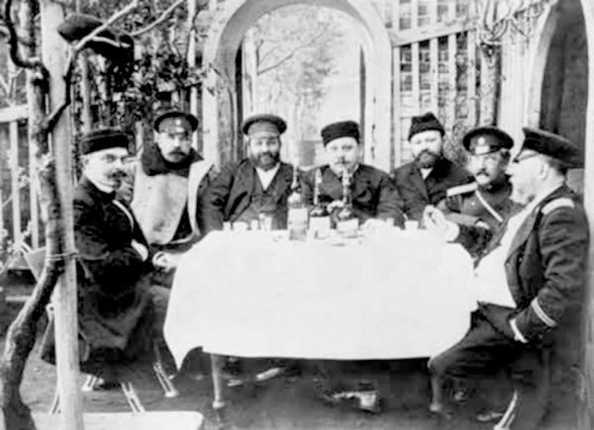 Арсений Иванович Морозов, совладелец Богородско-Глуховской мануфактуры (третий слева), и его гости
