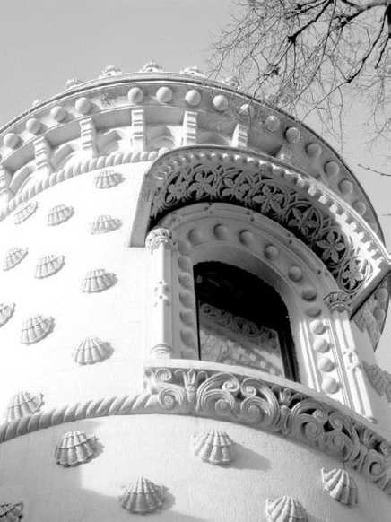 В Испании в городе Саламанке стоит «Замок ракушек» – Каса де Кончас, построенный в XV веке рыцарем из ордена Сантьяго (ракушка была символом этого ордена). Согласно легенде, когда-то на Пиренеи приплыл святой Яго (Иаков). За время длительного путешествия днище его корабля обросло огромными ракушками. Монахи разнесли эти священные ракушки по замкам и монастырям Испании и Португалии. Вот и Мазырин, чей скульптурный портрет встречает гостей у входа, украсил свое творение ракушками и великолепными каменными плетениями.