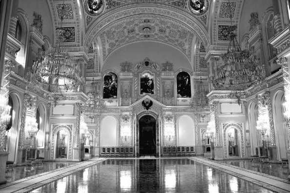 Пройдя мраморный Аванзал, где помещался караул во время высочайших приездов в Кремль, гости попадали в самый знаменитый зал Большого Кремлевского дворца – бело-золотой Георгиевский зал, названный в честь высшего военного ордена Святого Георгия Победоносца.