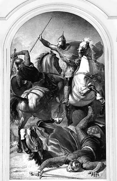 На картине Ф.А. Моллера изображены легендарные подвиги Александра Невского