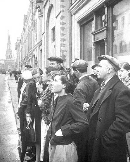 Москвичи на Никольской слушают объявление по радио о начале войны