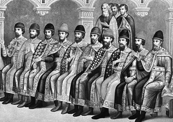 Во время таких церемоний монарх в Большом Государевом наряде шествовал в палату, окруженный боярами, под гул большого колокола – благовеста. Торжественно войдя в зал, государь поднимался на трехступенчатое возвышение и под расшитым золотом балдахином усаживался на трон. По обе стороны от трона выстраивались четверо юношей – рынд, облаченных в белые атласные одежды и высокие рысьи шапки, с золотыми цепями на плечах. Этот особый караул был вооружен парадными серебряными секирами.