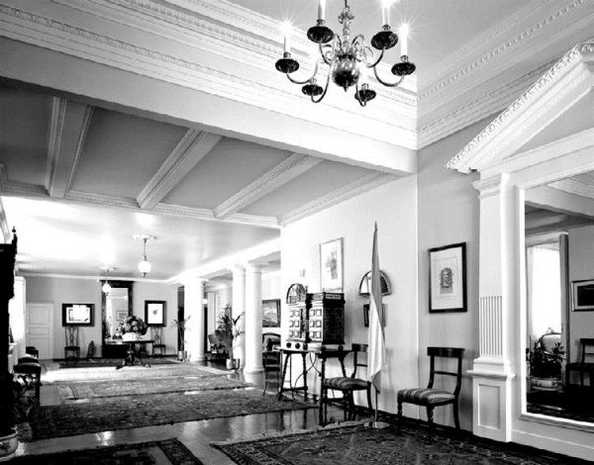 «Послушайте, эти американцы творят чудеса – они научились даже поджигать мороженое!» Кроме десерта Брежнева, впрочем, как и других советских руководителей, немало удивила и грандиозная люстра в Большом зале. Со слов сотрудников посольства, она самая большая из тех, что висят в частных домах Москвы. Ее соорудили в начале прошлого века братья Вишневские – мастера, работавшие для царской семьи». Люстра прекрасно сохранилась, хотя в 1946 году ее пришлось срочно ремонтировать. Вновь назначенный посол генерал Смит, приехав в Москву, первым делом озаботился состоянием металлических тросов, на которых держались хрустальные подвески весом в 11 килограммов, – они сильно проржавели и грозили оборваться.