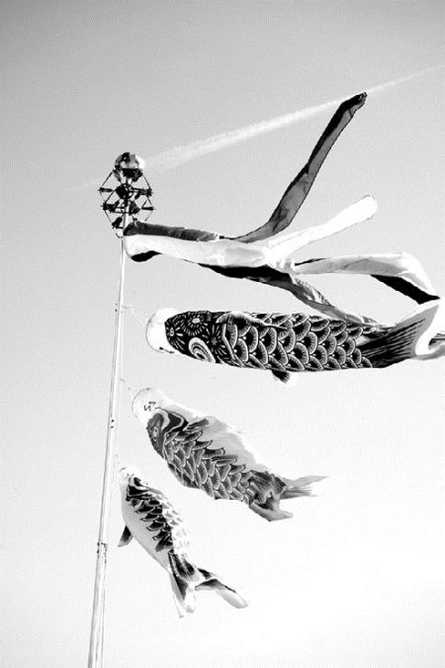 Перед Днем детей японские семьи вывешивают на шесте перед домом кои-нобори – разноцветные флаги в форме карпов, количество флагов зависит от количества мальчиков в семье.